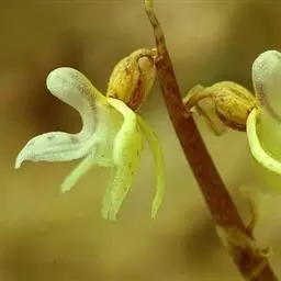 细距舌唇兰(学名:Platanthera metabifolia F. Maekawa):植株高28-42厘米。块茎卵状纺锤形,肉质,长2.5-3厘米。茎直立,无毛,在基部具2枚彼此靠近、近对生的大叶,叶片匙状椭圆形、长圆形或椭圆形。总状花序具7-17朵花,长9-19厘米;花较大,带绿白色或黄绿色;花瓣直立,较厚,偏斜,线状披针形;唇瓣向前伸,舌状,肉质,厚,长9-10毫米,宽1-1.5毫米,先端钝;距细圆筒状。花期7-8月。