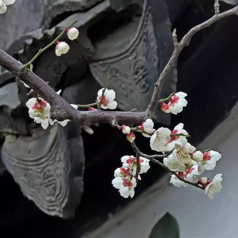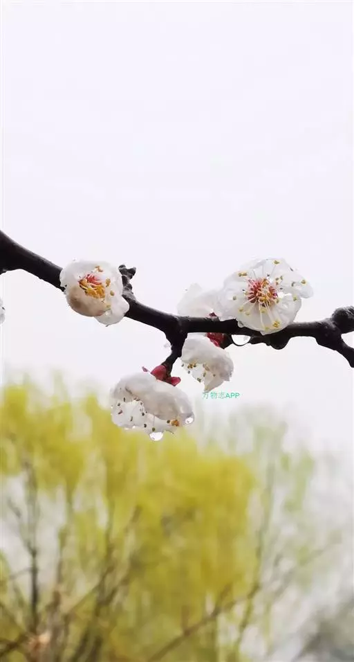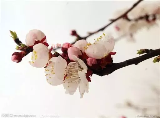 杏花有变色的特点,含苞待放时,朵朵艳红,随着花瓣的伸展,色彩由浓渐渐转淡,到谢落时就成雪白一片。“道白非真白,言红不若红,请君红白外,别眼看天工。”这是宋代诗人杨万里的咏杏五绝,他对杏花的观察十分细致。