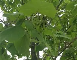楸紫葳科小乔木,高8-12米。叶三角状卵形或卵状长圆形,宽达8厘米,顶端长渐尖,基部截形,…