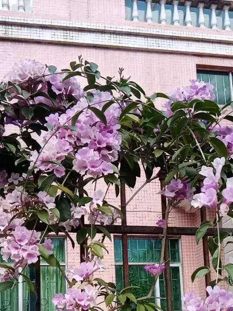 紫芸藤,别名:非洲凌霄,原产于非洲的常绿攀援木质藤本植物。