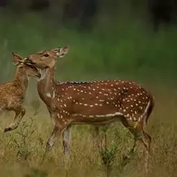 坡鹿是偶蹄目鹿科鹿属动物,体长1.6米左右,体重60~100千克。体形狭长,颈部和四肢也较为细长,…