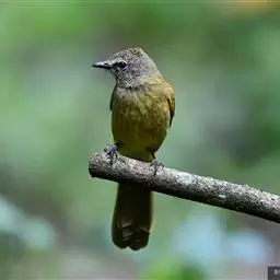黄绿鹎,小型鸟类,体长19-22厘米。额至头顶暗褐具灰色羽缘,眼先黑色,…