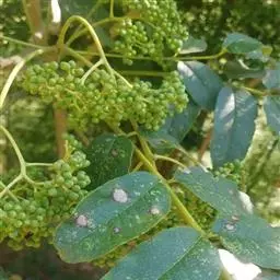本种的特征是:分果瓣较大,内、外果皮不等大;果序上的果密集砚壳花椒 成团;嫩枝有较大、近于海绵质的髓部;小叶的叶缘呈棕红色。