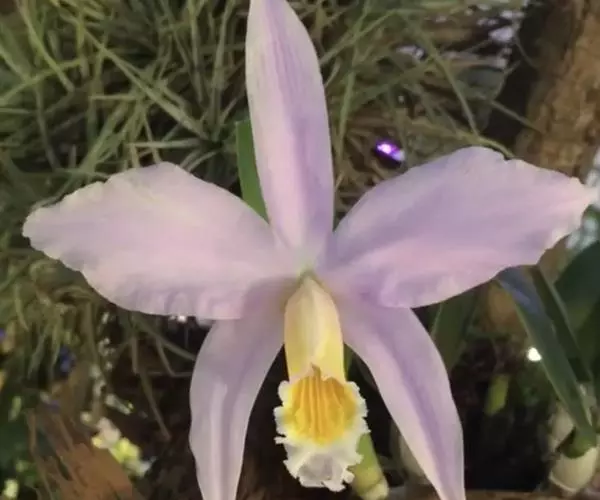 花序通常长2-8厘米,总状或基部有1-2个分枝而成圆锥状,具2-10朵花,但每次仅开1朵花;花苞片宽卵状三角形,基部围抱花序轴,长3-5毫米;花梗和子房长1.5-3厘米;花粉红色或略带紫色或白色;萼片狭椭圆形或狭椭圆状披针形,长2.5-4厘米,宽7-9毫米;花瓣椭圆形或卵状椭圆形,与萼片近等长,宽1.3-1.5厘米;唇瓣轮廓近长圆状卵形,长2.5-4厘米,3裂;侧裂片钝,内弯,围抱蕊柱;中裂片近方形,长1-1. 4厘米,先端2浅裂或微凹;唇盘上有3(-5)条褶片;蕊柱稍向前弯,长2-2.5厘米。蒴果近长圆形,长约3厘米,宽8-10毫米。