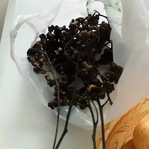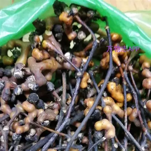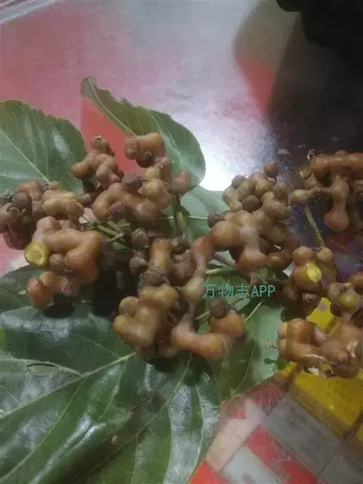 浆果状核果近球形,直径5-6.5毫米,无毛,成熟时黄褐色或棕褐色;果序轴明显膨大;种子暗褐色或黑紫色,直径3.2-4.5毫米。花期5-7月,果期8-10月。