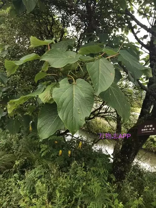 叶互生,厚纸质至纸质,宽卵形、椭圆状卵形或心形,长8-17厘米,宽6-12厘米,顶端长渐尖或短渐尖,基部截形或心形,稀近圆形或宽楔形,边缘常具整齐浅而钝的细锯齿,上部或近顶端的叶有不明显的齿,稀近全缘,上面无毛,下面沿脉或脉腋常被短柔毛或无毛;叶柄长2-5厘米,无毛。