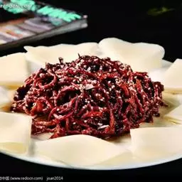 京酱肉丝,是一道知名度很高的菜肴,它是北京菜中的经典代表菜之一。制作时选用猪瘦肉为主料,辅以甜面酱…