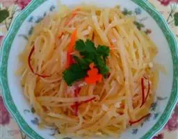 醋熘三丝是以土豆、青椒等为主要食材制作的美食。