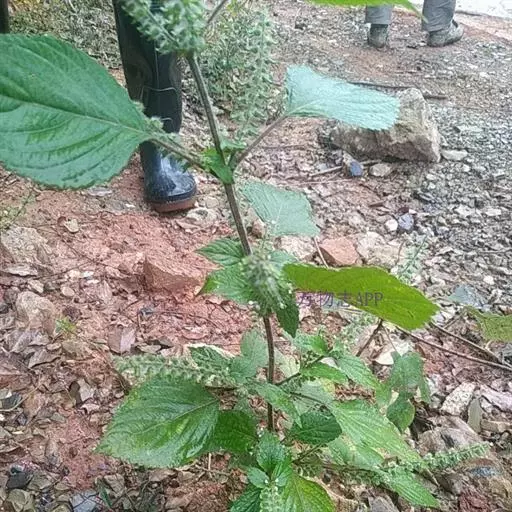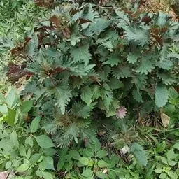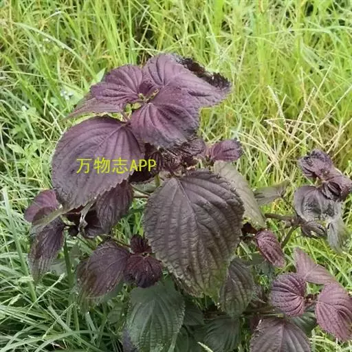 紫苏(学名:Perilla frutescens (L.) Britt. ),别名:桂荏、白苏、赤苏等;为唇形科一年生草本植物。具有特异的芳香,叶片多皱缩卷曲,完整者展平后呈卵圆形,长4至11厘米,宽2.5至9厘米,先端长尖或急尖,基部圆形或宽楔形,边缘具圆锯齿,两面紫色或上面绿色,下表面有多数凹点状腺鳞,叶柄长2至5厘米,紫色或紫绿色,质脆。嫩枝紫绿色,断面中部有髓,气清香,味微辛。