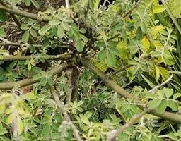 幼枝密被针刺及宽扁大形紫色皮刺,小叶片上面叶脉明显,…