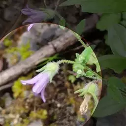 西南风铃草(学名:Campanula pallida Wallich ):根胡萝卜状。茎单生,少2支。茎下部的叶有带翅的柄,上部的无柄,椭圆形,菱状椭圆形或矩圆形,顶端急尖或钝,边缘有疏锯齿或近全缘。花下垂,顶生于主茎及分枝上;花萼筒部倒圆锥状;花冠紫色或蓝紫色或蓝色,管状钟形;花柱长不及花冠长的2/3,内藏于花冠筒内。蒴果倒圆锥状。种子矩圆状,稍扁。花期5-9月。