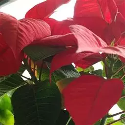 常绿或半常绿灌木,盆栽时株高0.5米-2米,在亚热带地区可长到6米以上。茎直立而光滑,质地松软,髓部中空,全身具乳汁。单叶互生,卵状椭圆形至阔披针形,长10-15厘米。开花时枝顶的节间变短,上面簇生出红色的苞片,向四周放射而出,苞片和叶片相似,只是较狭,是主要观赏部位。小花顶生在苞片中央的杯状花序内,雌雄同株异花,雌花单生于花序的中央,雄花多数,均无花被。蒴果,因雌花比雄花开得早,花期又在12月至翌年3月,故盆栽地区多不结实。