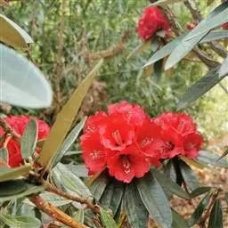 溪畔杜鹃:常绿灌木,高可达3米;幼枝纤细,叶纸质,上面深绿色,下面淡黄褐色,叶脉在上面凹陷,下面凸…