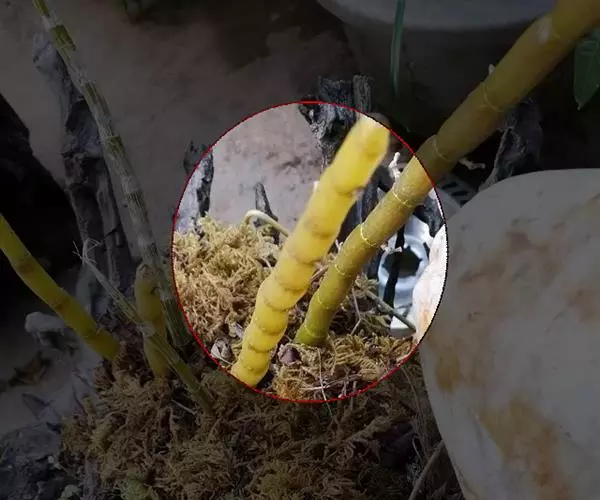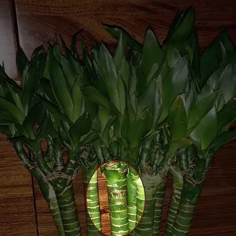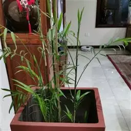 佛肚竹(学名:Bambusa ventricosa McClure):为禾本科丛生型竹类植物。幼秆深绿色,稍被白粉,老时转榄黄色。秆二型:正常圆筒形,高7-10米,节间30-35厘米;畸形秆通常25-50厘米,节间较正常短。箨叶卵状披针形;箨鞘无毛;箨耳发达,圆形或卵形至镰刀形;箨舌极短。