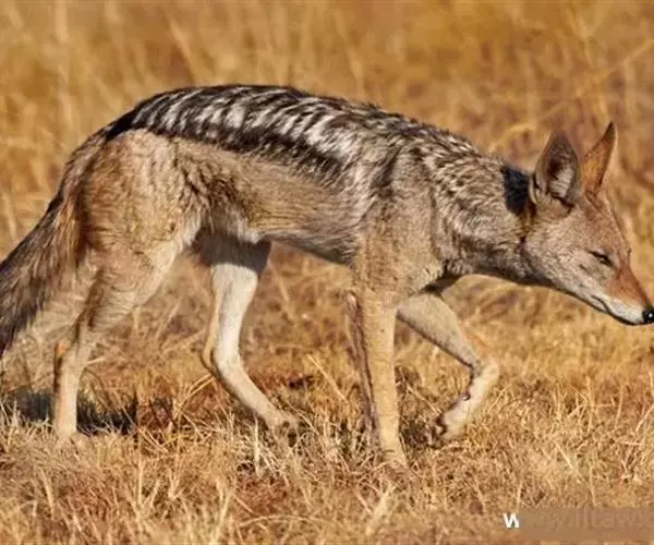 亚洲胡狼(学名:Canis aureus aureus):是金豺的指名亚种,体型中等、匀称,四肢修长,趾行性,利于快速奔跑。头腭尖形,颜面部长,鼻端突出,耳尖且直立,嗅觉灵敏,听觉发达。犬齿及裂齿发达;上臼齿具明显齿尖,下臼齿内侧具一小齿尖及后跟尖;臼齿齿冠直径大于外侧门齿高度。毛粗而长。前足4~5趾,后足一般4趾 ;爪粗而钝,尾多毛。