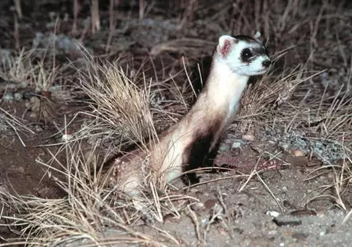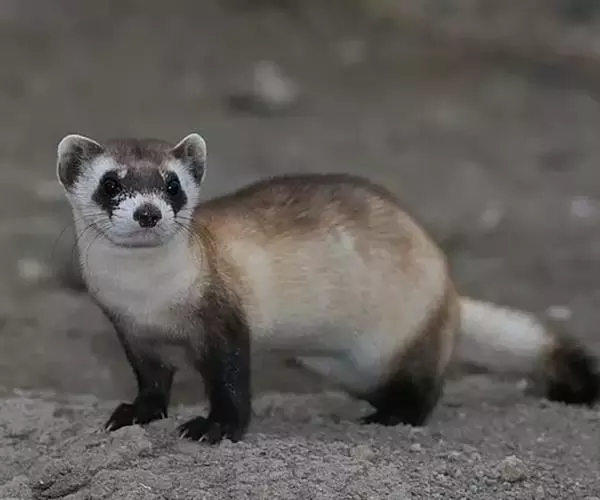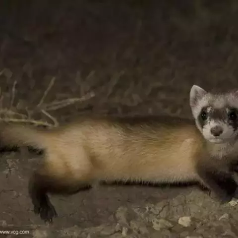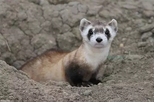 黑足鼬(学名:Mustela nigripes):是一种原产于北美洲的小型食肉性哺乳动物和唯一原产于北美地区的鼬类。体长31-41厘米,尾长11-15厘米,体重0.8-1千克。雄性略大,上体皮毛是黄色,下体灰白色,有着深色的尾巴以及黑色的尾巴尖,嘴部、脸部、喉咙、前额部分呈白色,黑白过渡色为黄褐色,眼睛周围有一个黑色的面具,鼻尖黑色,腿很短,有强壮的前肢和较大的前爪,利于挖掘。