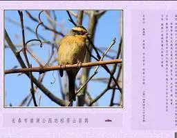 叫声:叫声为颤音,告警时发出尖声的“zieh-zieh”,鸣声为简单而甜美的颤鸣“si-ti-si-tsi,tsutsitsi”或“tzwe-e-you,tzwe-e-you”。
