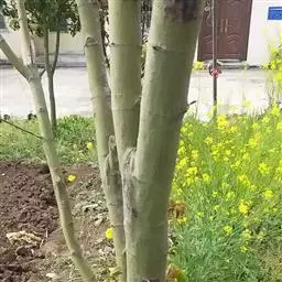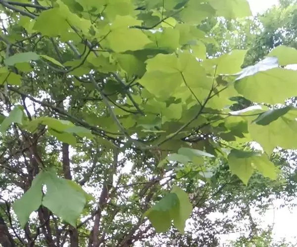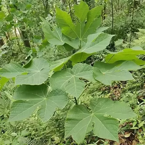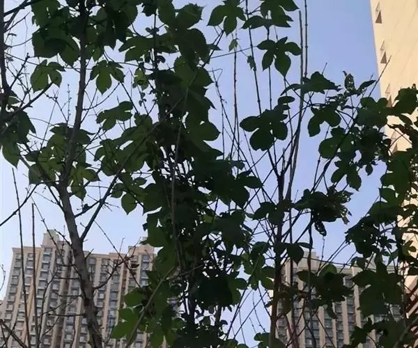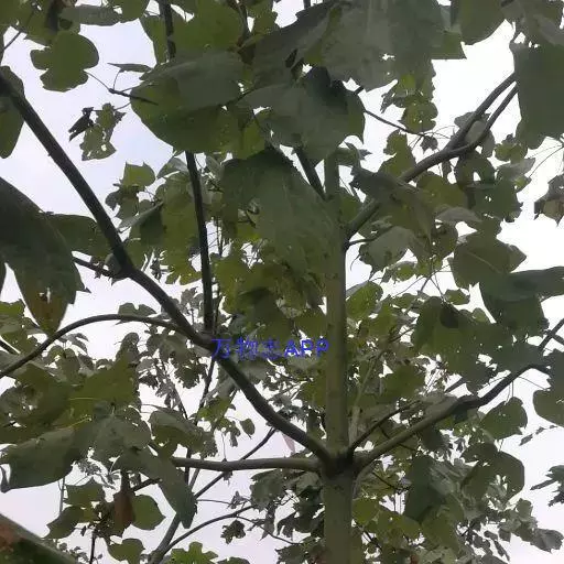 中国梧桐叶图4 梧桐树常用播种法繁殖,扦插、分根也可。秋季果熟时采收,晒干脱粒后当年秋播,也可沙藏至翌年春播。条播行距25厘米,覆土厚约1.5厘米。每亩播量约15公斤。沙藏种子发芽较整齐,播后4至5周发芽。干藏种子常发芽不齐,可在播前先用温水浸种催芽。正常管理下,当年生苗高可达50厘米以上,翌年分栽培养。三年生苗即可出圃。栽植地点宜选地势高燥处,穴内施入基肥,定干后,用蜡封好锯口。注意梧桐木虱、霜天蛾、刺蛾等虫害,可用石油乳剂、敌敌畏、乐果、甲胺磷等防治。在北方,冬季对幼树要包扎稻草绳防寒。入冬和早春各施肥一次。