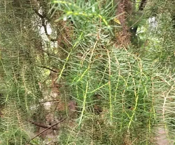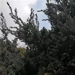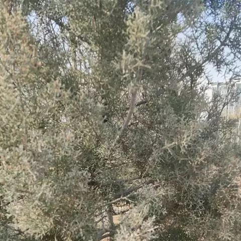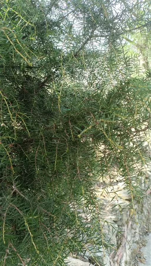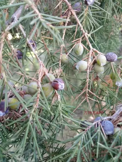 杜松 灌木或小乔木,高达10米;枝条直展,形成塔形或圆柱形的树冠,枝皮褐灰色,纵裂;小枝下垂,幼枝三棱形,无毛。