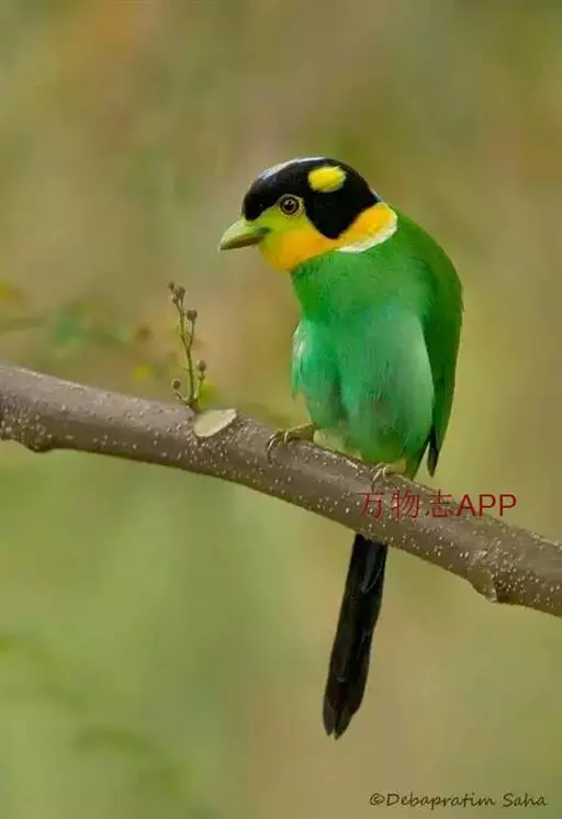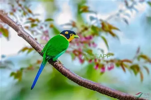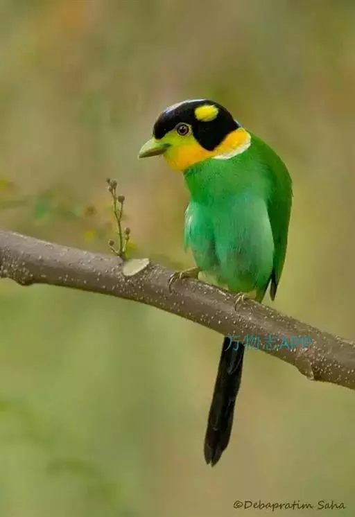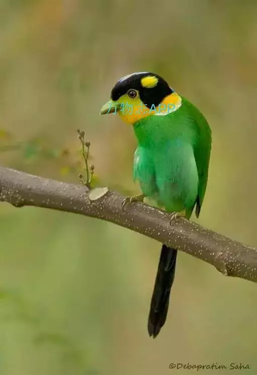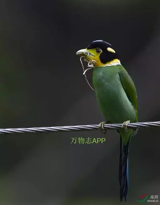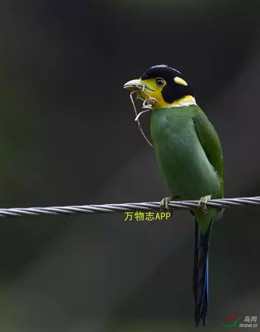 长尾阔嘴鸟是雀形目阔嘴鸟科的鸟类,体长约25厘米,是绿色阔嘴鸟。形长的楔形尾蓝色,喉及脸黄色,顶冠…