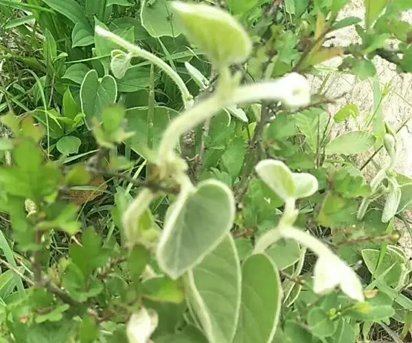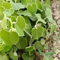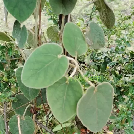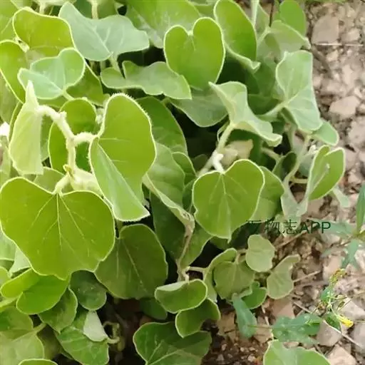 木质藤本;根细长,圆柱形;嫩枝密被灰白色长绵毛,老枝无毛,干后常有纵槽纹,暗褐色。叶纸质,卵形、卵状心形,长3.5-10厘米,宽2.5-8厘米,顶端钝圆至短尖,基部心形,基部两侧裂片广展,湾缺深1-2厘米,边全缘,上面被糙伏毛,下面密被灰色或白色长绵毛,基出脉5-7条,侧脉每边3-4条;叶柄长2-5厘米,密被白色长绵毛。