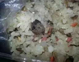 主料:洋葱1个、青椒1个、红烧肉和榨菜各50克,米饭3碗,芝士两片。