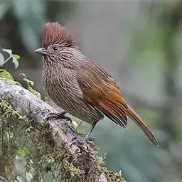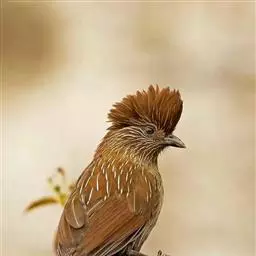 条纹噪鹛是画眉科、噪鹛属中型鸟类,体长28-32厘米。头具短的羽冠,上体栗褐色,飞羽外翻蓝灰色。…