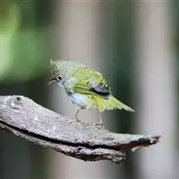白腹凤鹛是绿鹃科、绿凤鹛属的小型鸟类,体长10-12厘米。上体从头到尾黄绿色,有短的羽冠,…