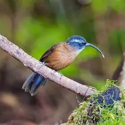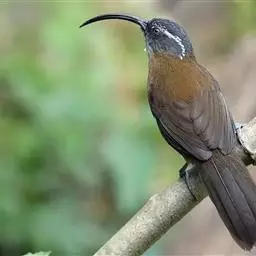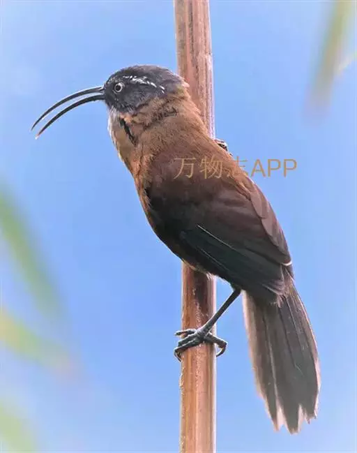 剑嘴鹛(学名:Xiphirhynchus superciliaris):中型鸟类,体长21-22厘米。嘴特别细长而向下弯曲,头顶和头侧烟灰色具长而窄的白色眉纹,在暗色的头上极为醒目,其余上体棕褐色或褐色。颏、喉白色杂有灰色条纹,其余下体锈红色。
