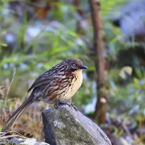 习性:常单独或成对活动,偶尔也见成小群或与钩嘴鹛混群活动和觅食,频繁地出入于林下灌木和竹丛间,或在满生蕨类植物的下木间跳跃穿梭,也沿树干上下活动,不时发出单调的叫声,叫声多为三音一度或7-8个音节急速连叫。