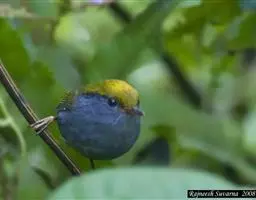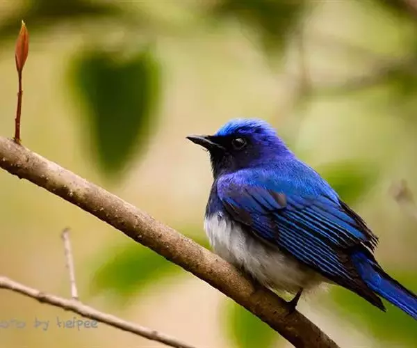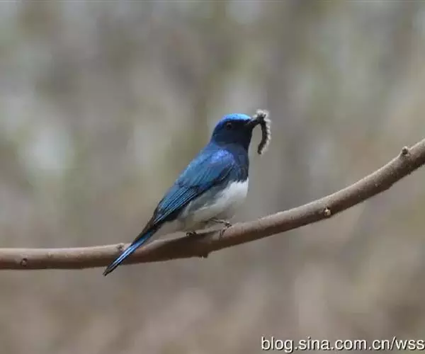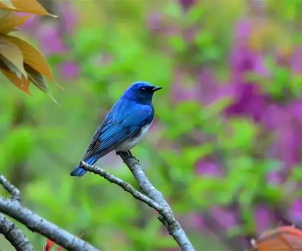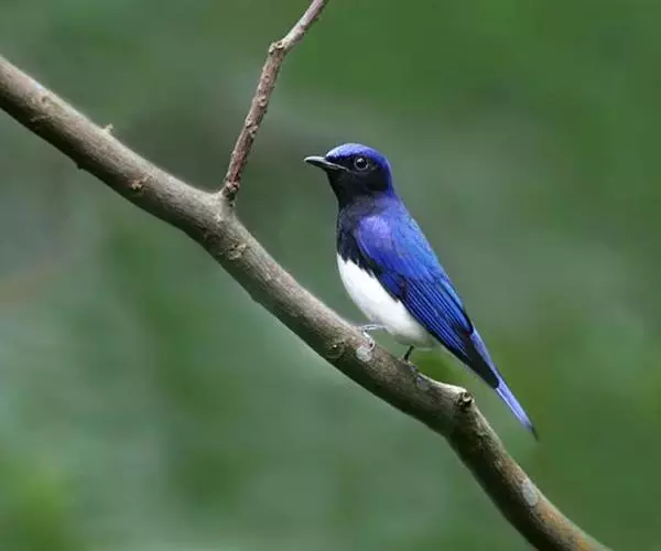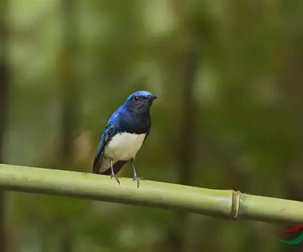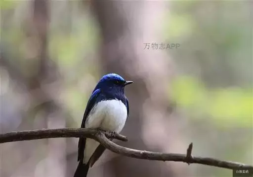 白腹蓝鹟(学名:Cyanoptila cyanomelana):体长14-17厘米,小型鸟类。雄鸟头顶钴蓝色或钴青蓝色,其余上体紫蓝色或青蓝色,两翅和尾黑褐色,羽缘颜色同背,外侧尾羽基部白色。头侧、颏、喉、胸黑色,其余下体白色。雌鸟上体橄榄褐色,腰沾锈色,眼圈白色。颏、喉污白色,胸灰褐色,胸以下白色。