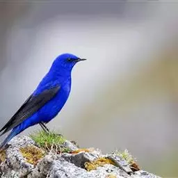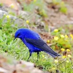 蓝大翅鸲是鹟科、大翅鸲属小型鸟类,体长19-21厘米。两翅尖长。雄鸟通体鲜紫蓝色具金属光泽。…