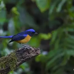 棕腹大仙鹟:体重24-28克,体长15-17厘米,是一种小型的色彩亮丽的鹟。雄鸟上体深蓝,下体棕色,…