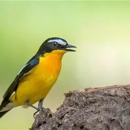 白眉姬鹟是小型鸟类,体长11-14厘米。雄鸟上体大部黑色,眉纹白色,在黑色的头上极为醒目。腰鲜黄色,…