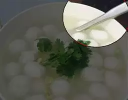 4.开锅后关火加味精和香菜,淋上香油即成。