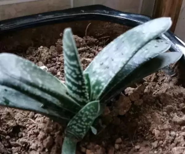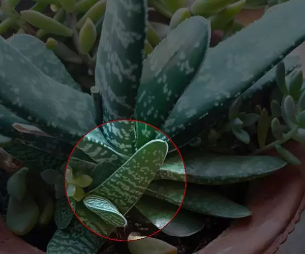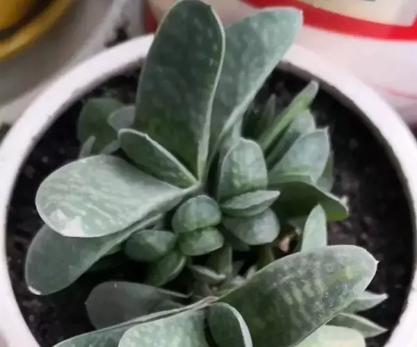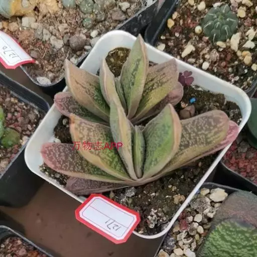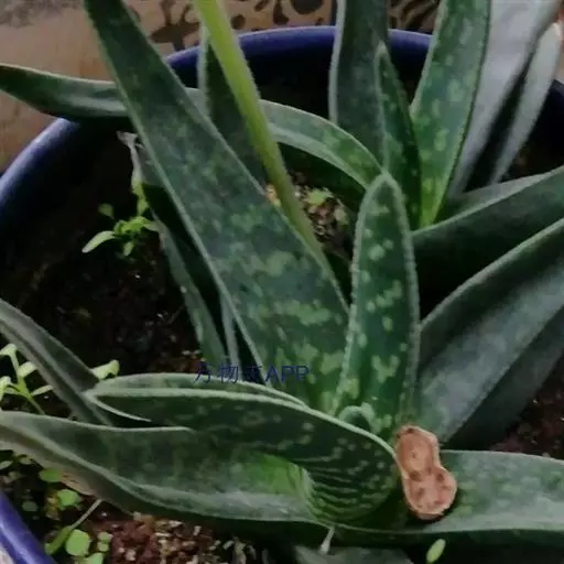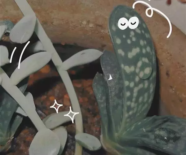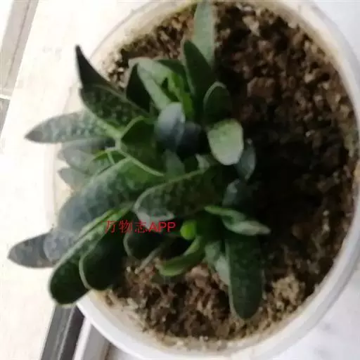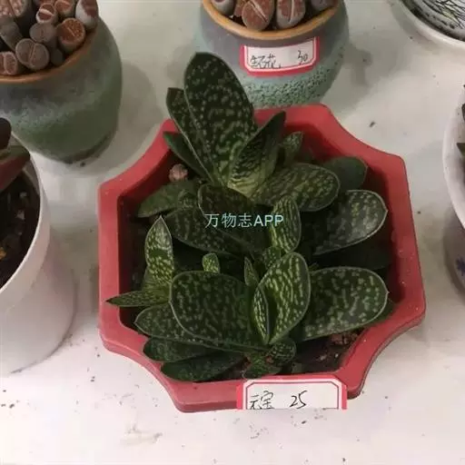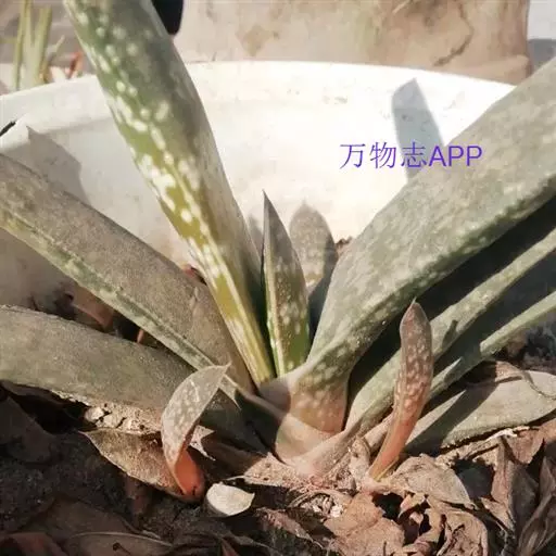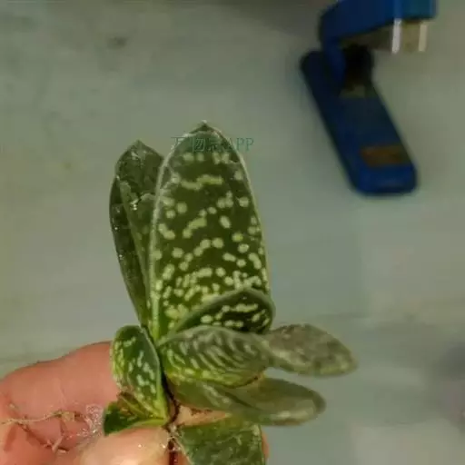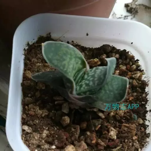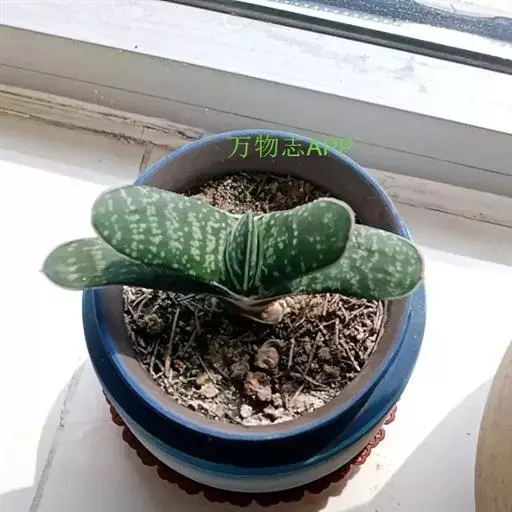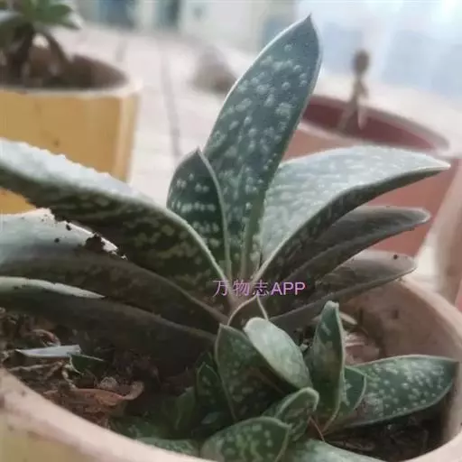 叶肉质较厚,像舌头,叶面光滑,带有白色 子宝 斑点,同种类还有锦斑变异品种,叶片中间会出现白色斑纹,是比较容易发生锦斑变异的品种。