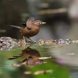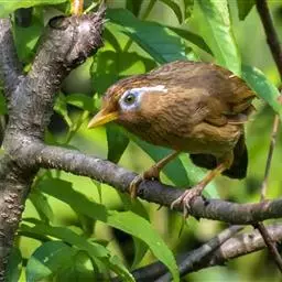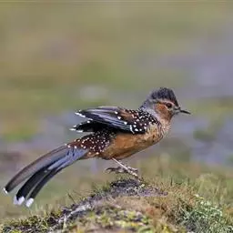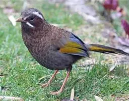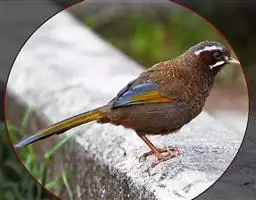大噪鹛:中型鸟类,体长32-36厘米。额至头顶黑褐色,背栗褐色满杂以白色斑点,…