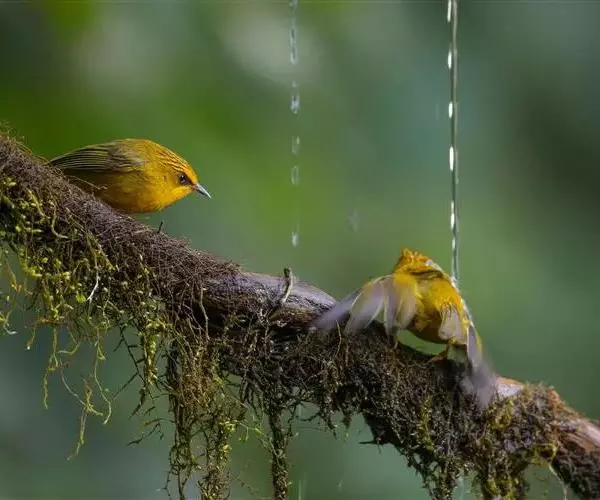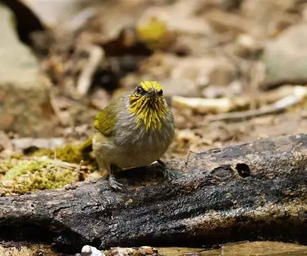 金头穗鹛小型鸟类,体长10~11厘米,是一种黄色小鸟。头顶金黄色有黑色纵纹,眼先黑色,…