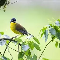 结小群活动于原始林、次生林及松林的低矮树丛的叶间,常与其他种类混群。叫声为非常嘹亮的4~8声低哨音“toot~”,第一声或前两声加重而有停顿;也有群鸟的吱吱叫声。