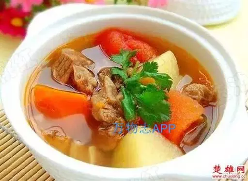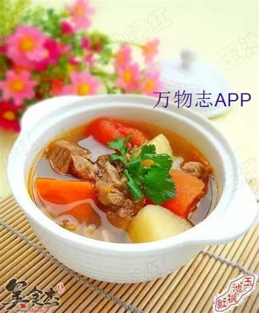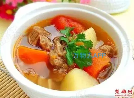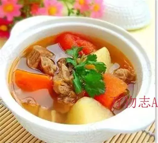 番茄500克、薯仔(土豆)400克、鸡蛋2只、金华火腿50克、生姜3片、牛尾1条、盐少许