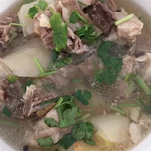 5、3小时后倒入切成块的白萝卜继续炖1小时,喝前根据口味调入盐即可。