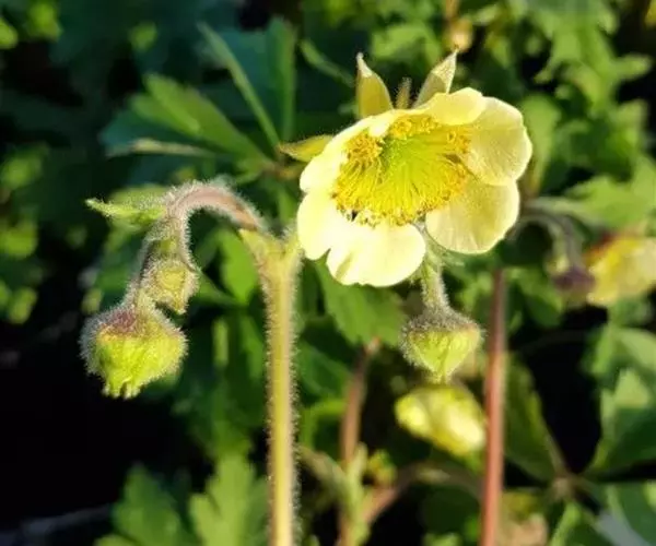 花序顶生,疏散排列,花梗被短柔毛或微硬毛;花直径1-1.7厘米;花瓣黄色, 几圆形,比萼片长;萼片卵状三角形,顶端渐尖,副萼片狭小,披针形,顶端渐尖稀2裂,比萼片短1倍多,外面被短柔毛及长柔毛;花柱顶生,在上部1/4处扭曲,成熟后自扭曲处脱落,脱落部分下部被疏柔毛。