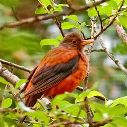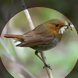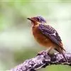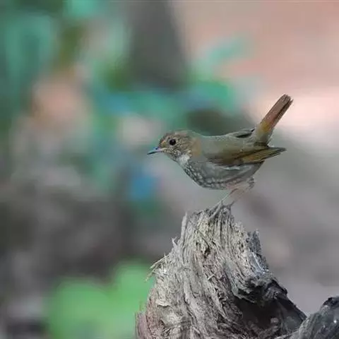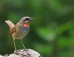 日本歌鸲:体型小似麻雀,但羽毛颜色较为美丽。嘴细长,嘴须不发达;翅短圆,上体草黄褐;雄鸟喉部橙棕色,…