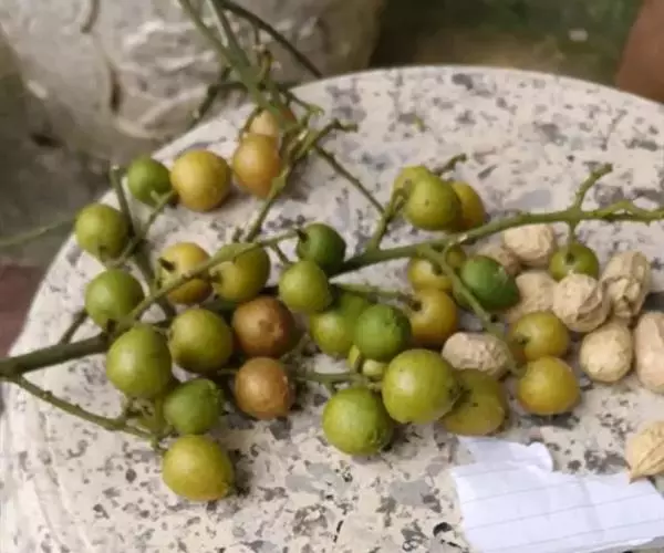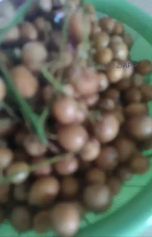 果圆形、椭圆形或阔卵形,长1.5-3厘米,宽1-2厘米,淡黄至暗黄色,被细毛,果肉乳白色,半透明,有种子1-4粒;子叶深绿色。花期4-5月,果期7-8月。产海南的其花果期均提早1-2个月。
