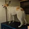 对参展犬而言,除按照美容基本法则美容外,特别重要的一点是用天然鬓毛刷除去毛皮中的皮屑,然后用猎犬手套进行梳理,所有不齐或蓬乱的毛都应剪掉。