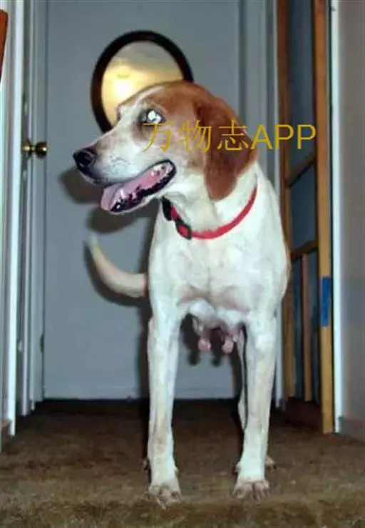 美国猎狐犬 美国猎狐犬头颅部较长,枕部稍成圆顶形,耳适度低位而长,拉起几乎达鼻尖,耳质地细致,相当宽,几乎完全缺乏直立能力而贴近头部,其前缘稍内转向颊部,耳尖圆眼大,眼距宽,褐色或淡褐色,吻相当长,直而方,额鼻阶明显。喉部干净,无皮折,但允许在嘴角下略有褶皱。肩胛斜,胸深,58厘米高的猎犬胸围71厘米为良好。肋骨扩张,背长适度,腰宽而稍拱起,尾中度高位,尾竖立,但不向前位于背上,稍弯,略成刷状。被毛为长度适中的贴身而硬的猎犬被毛,毛色为任何毛色 。