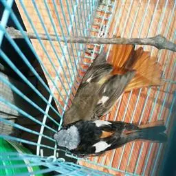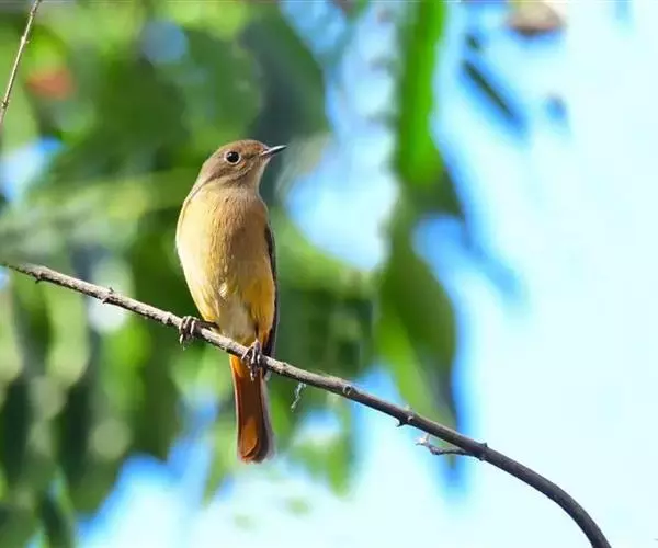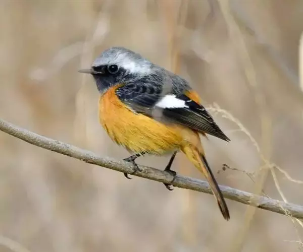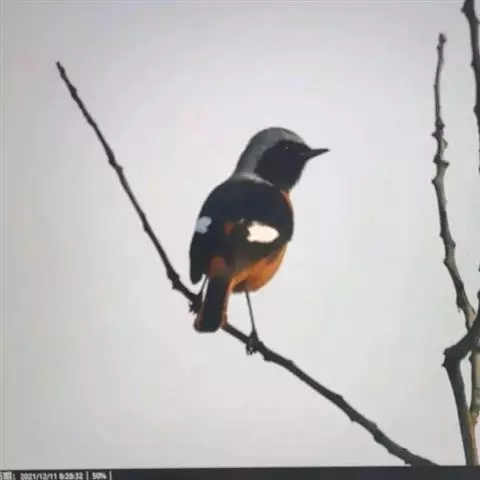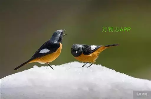 北红尾鸲(学名:Phoenicurus auroreus):是小型鸟类,体长13-15厘米。雄鸟头顶至直背石板灰色,下背和两翅黑色具明显的白色翅斑,腰、尾上覆羽和尾橙棕色,中央一对尾羽和最外侧一对尾羽外翈黑色。前额基部、头侧、颈侧、颏喉和上胸概为黑色,其余下体橙棕色。雌鸟上体橄榄褐色,两翅黑褐色具白斑,眼圈微白,下体暗黄褐色。 相似种红腹红尾鸲头顶至枕羽色较淡,多为灰白色,尾全为橙棕色,中央尾羽和外侧一对尾羽外翈不为黑色。