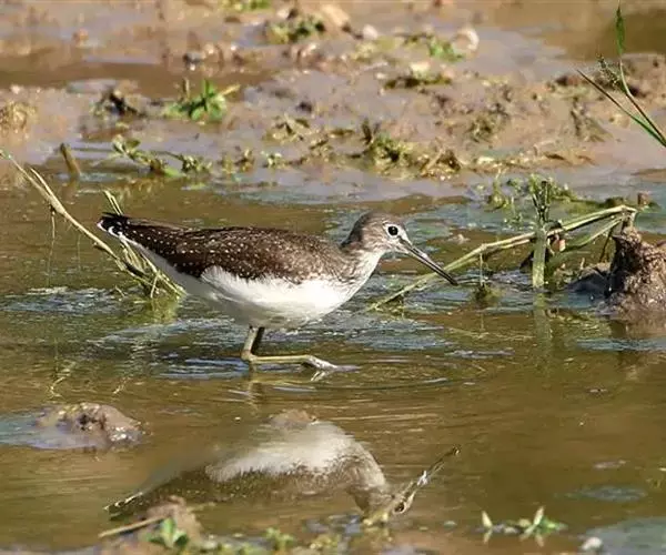 雌鸟和雄鸟相似,但背部不呈暗栗红色而为暗橄榄绿色,下体羽色略较雄鸟为浅,尾下的覆羽为暗绿色,并杂以白色的斑块。