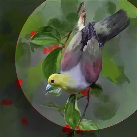 厚嘴绿鸠(学名:Treron curvirostra):是鸟纲、鸠鸽科的一种体型较小的鸟类,体长为25-28厘米,体重170-190克。它的体型与家鸽差不多,嘴短而厚,呈淡黄绿色或铅白色,嘴基的两侧呈珊瑚红色,脚也是珊瑚红色,爪为角褐色。