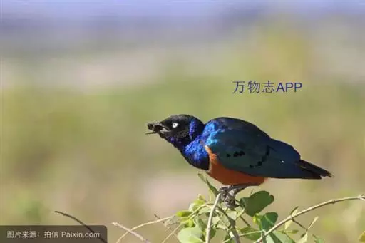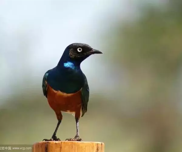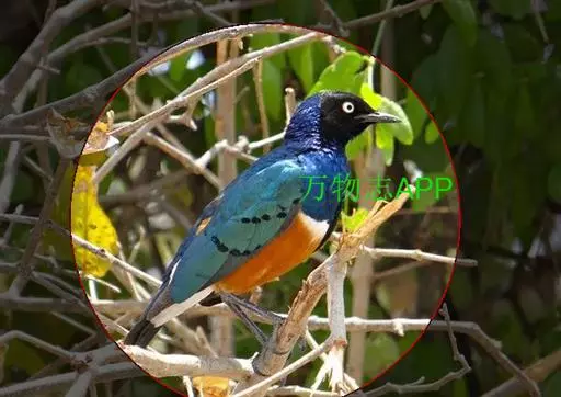 楔尾丽椋鸟 楔尾丽椋鸟21~25厘米,雄性体重68~73克,雌性体重65~68克,属中型鸟类。成鸟顶帽、后枕、颈、翕、背部和尾覆羽形成虹彩绿色;耳羽蓝绿色;而下体的大部分(颏,喉,胸,尾下覆羽)呈明亮的绿色;腹部和侧面有淡蓝色光泽;翅膀亮绿色,和紫色的肩部及翼侧的青铜色调形成对比。覆羽有深蓝色斑点;尾羽有一些交叉形图案的亮绿色。虹膜红色,腿和嘴黑色。两性类似,但有橙色而非红色的光圈。